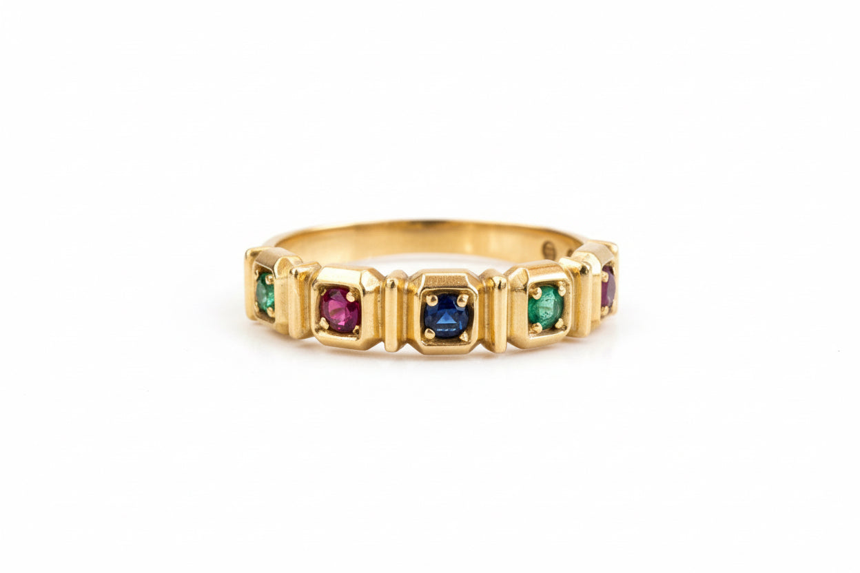 טבעת זהב 14K משובצת אבני חן טבעיות