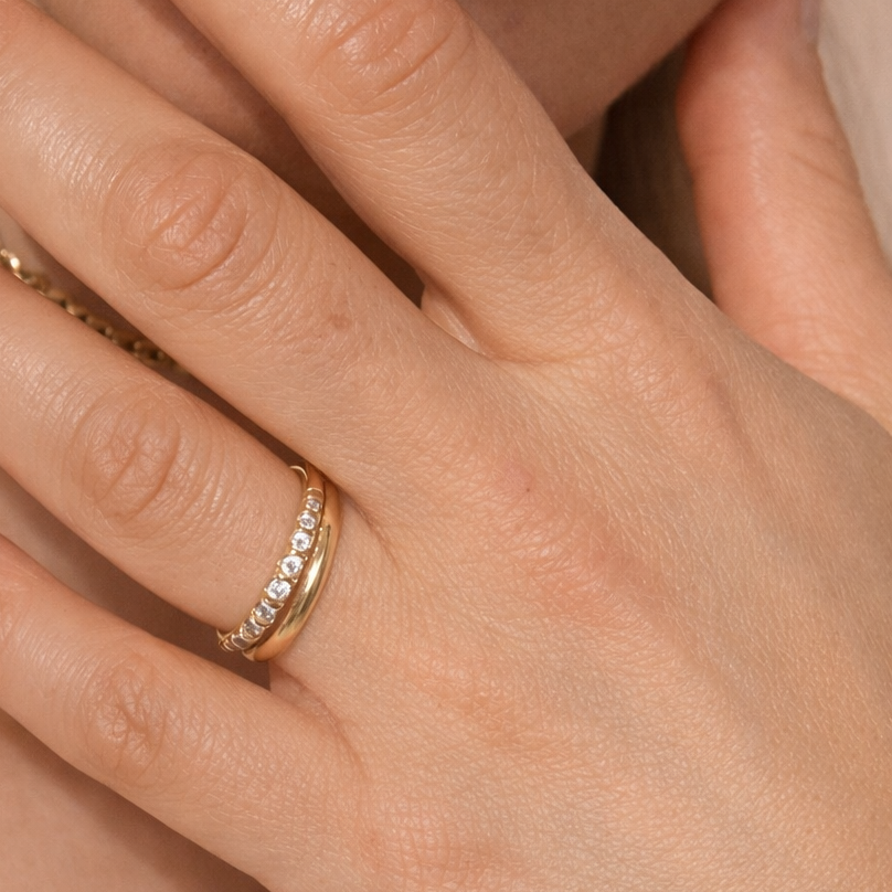 טבעת זהב 14 Kספירלה משובצת זרקונים