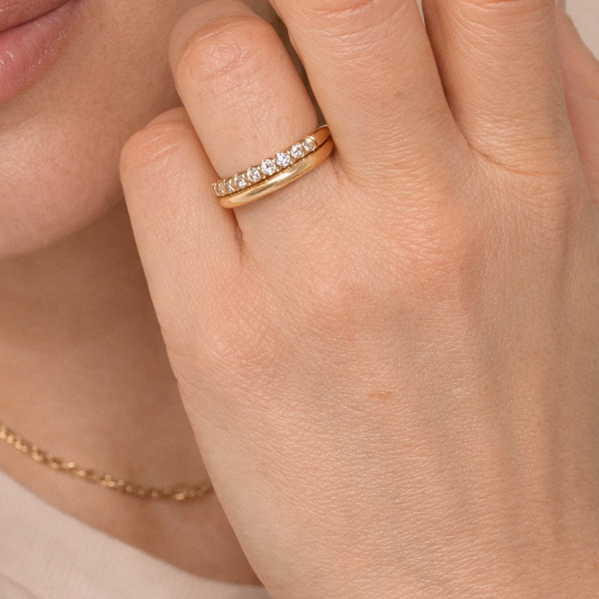 טבעת זהב 14K משובצת יהלומי מעבדה מדורגים