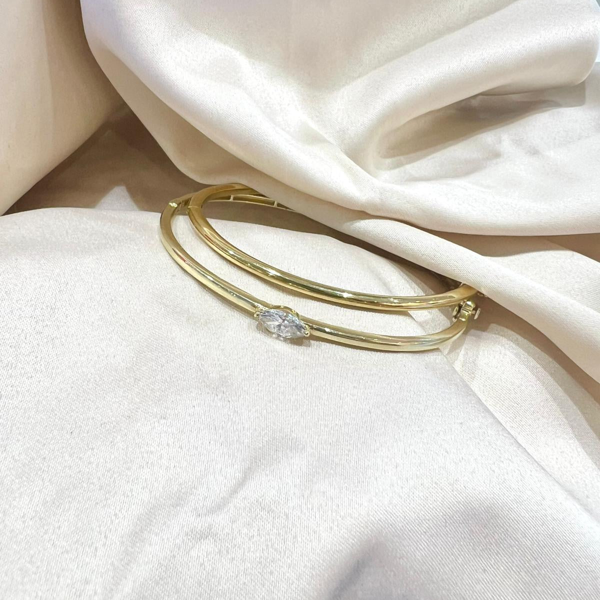 צמיד בנגל כסף / ציפוי זהב מרקיזה משובץ זרקונים