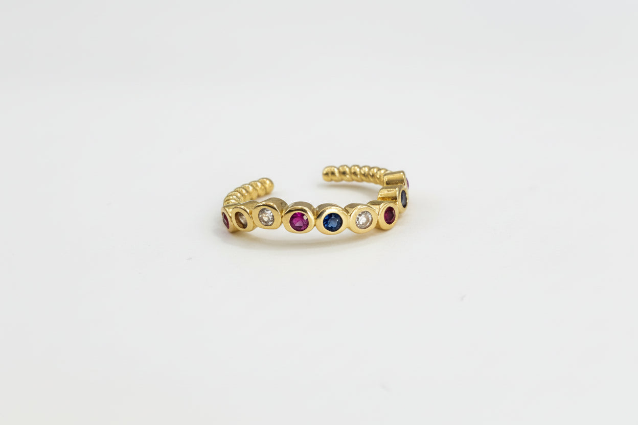 חישוק הליקס ללא חור בציפוי זהב משובץ אבנים צבעוניות