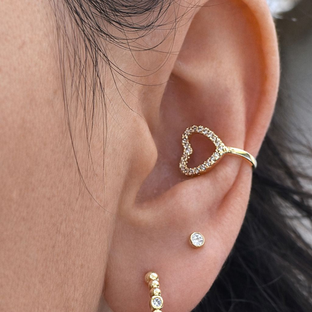 הליקס / קונץ' ללא חור בציפוי זהב בעיצוב לב משובץ
