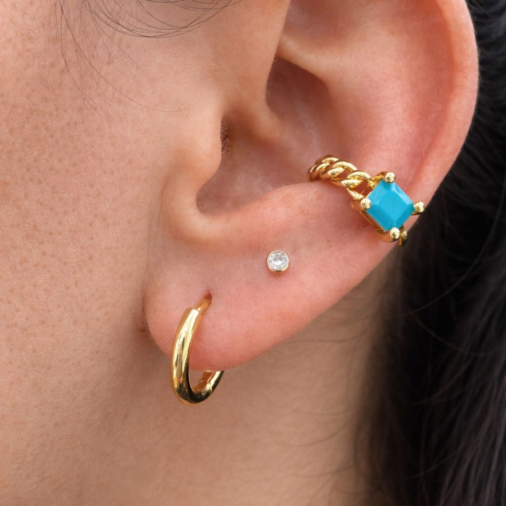חישוק הליקס ללא חור בציפוי זהב עם אבן כחולה משובצת