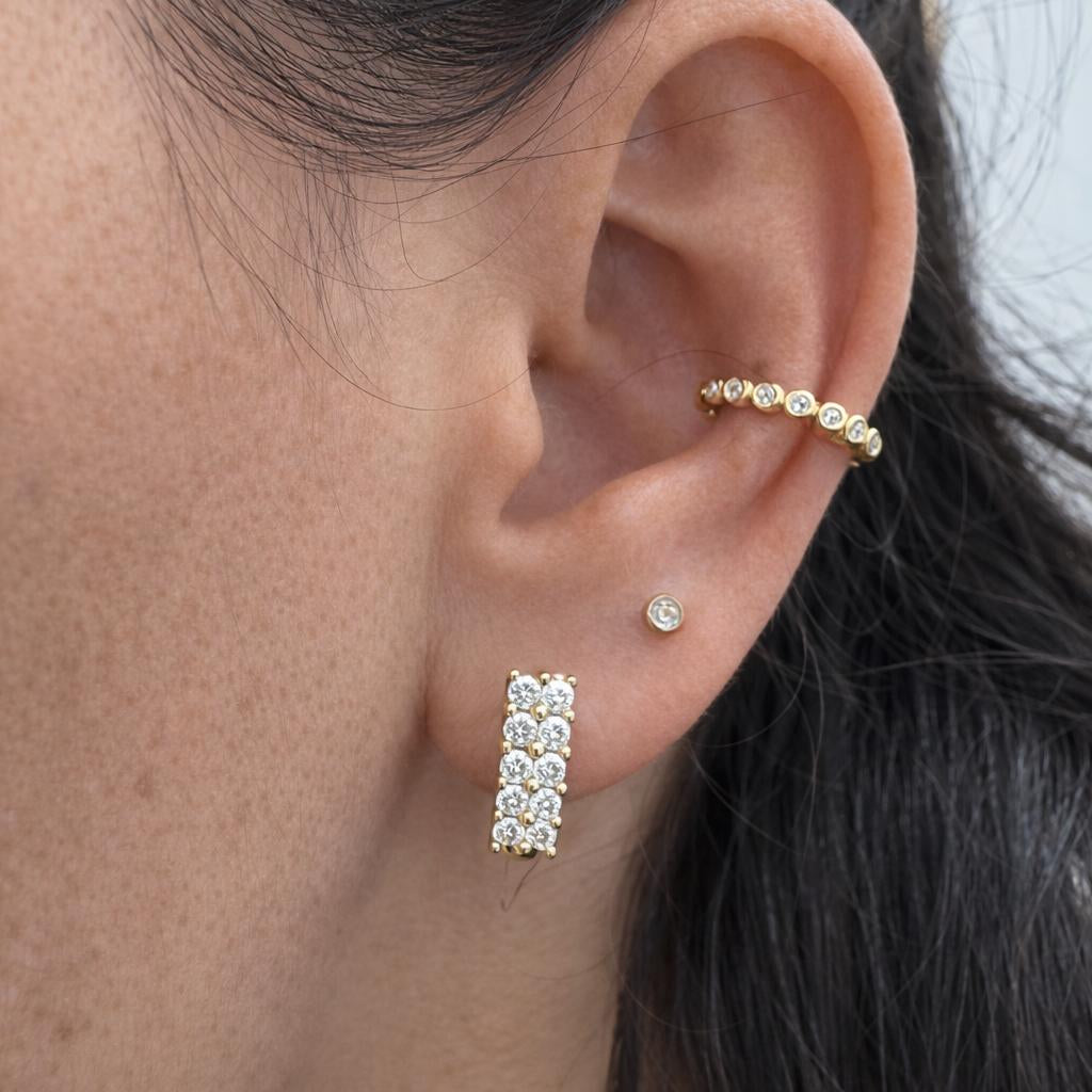 עגילי חישוק נופלים זהב 14K מעוצבים משובצים