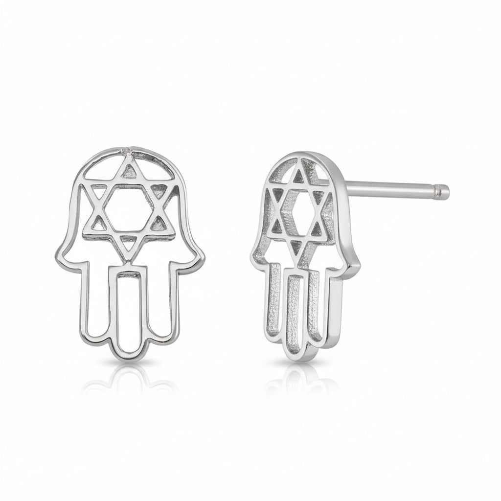 עגילי זהב לבן 14K דגם חמסה