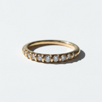 טבעת זהב 14 קראט עדינה ואלגנטית המשובצת תשעה יהלומי מעבדה בשיבוץ קלאסי לאורך החלק העליון של הטבעת. היהלום המרכזי מעט גדול יותר, והיהלומים בצדדים הולכים וקטנים בהדרגה, מה שיוצר מראה מדורג והרמוני שמדגיש את הניצוץ של כל אבן.