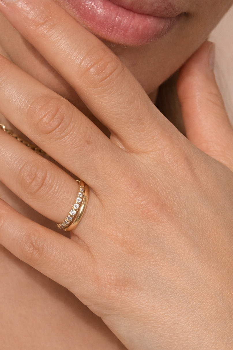 טבעת דקה ונוחה במיוחד לענידה יומיומית, עם מראה מינימליסטי שמרגיש טבעי על היד ואינו מוסיף עומס או עובי על האצבע.
