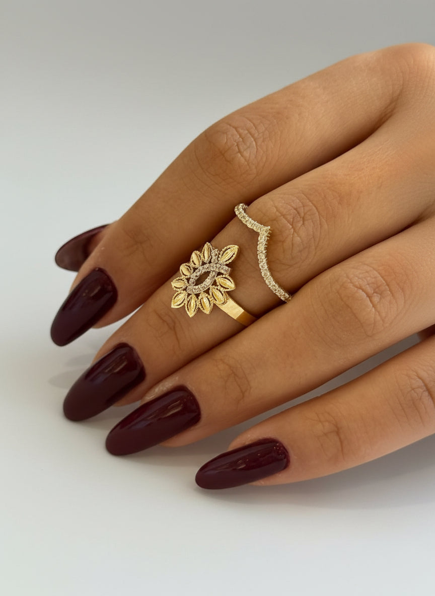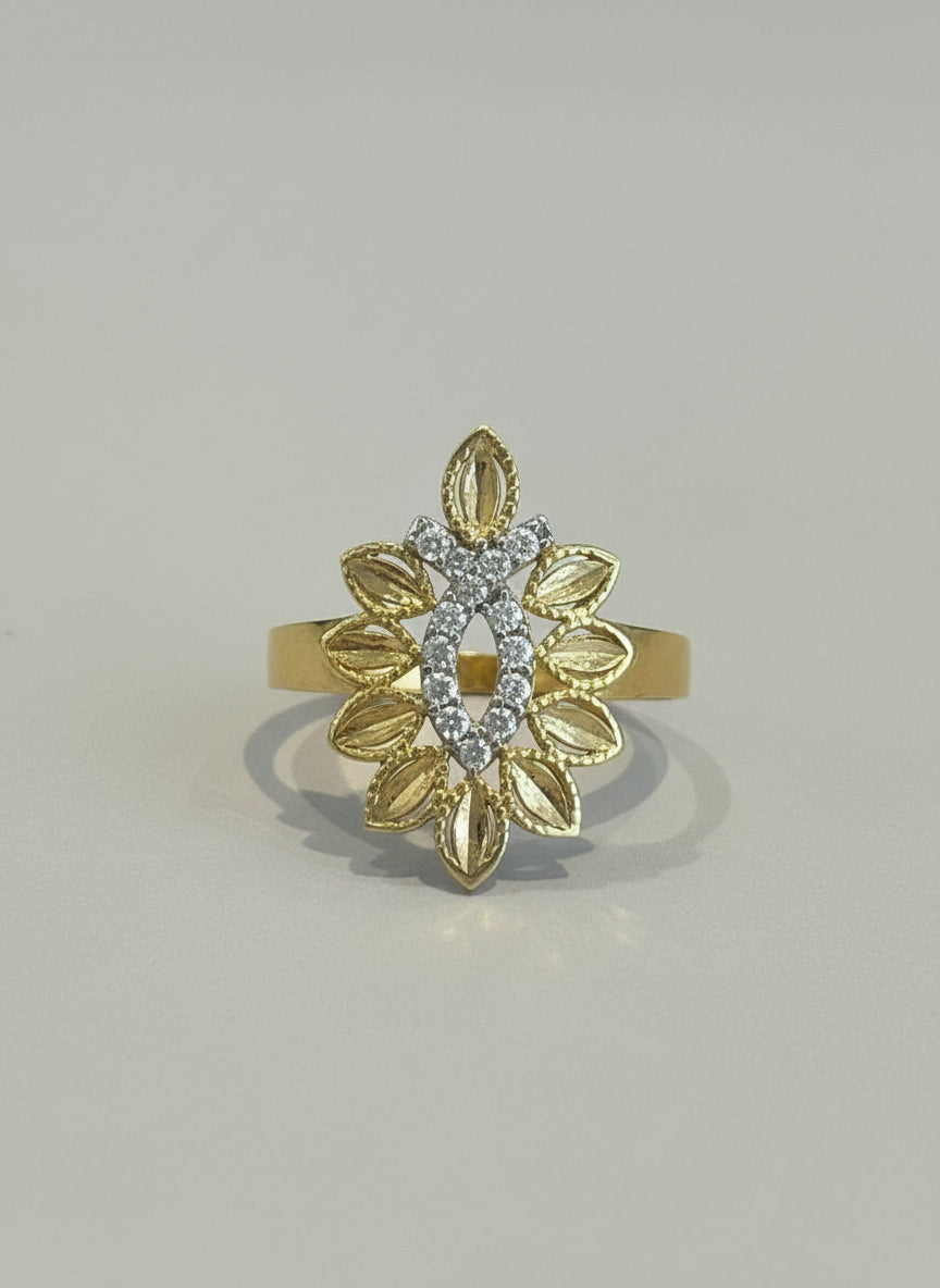 טבעת זהב 14K פרח עלים משובצת