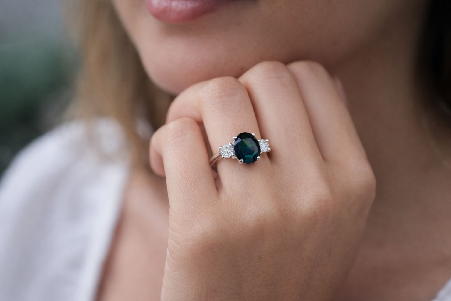 השילוב בין עומק הצבע של הספיר לבין הברק הנקי של היהלומים יוצר טבעת עם נוכחות יוקרתית, קלאסית ומלאת סטייל.