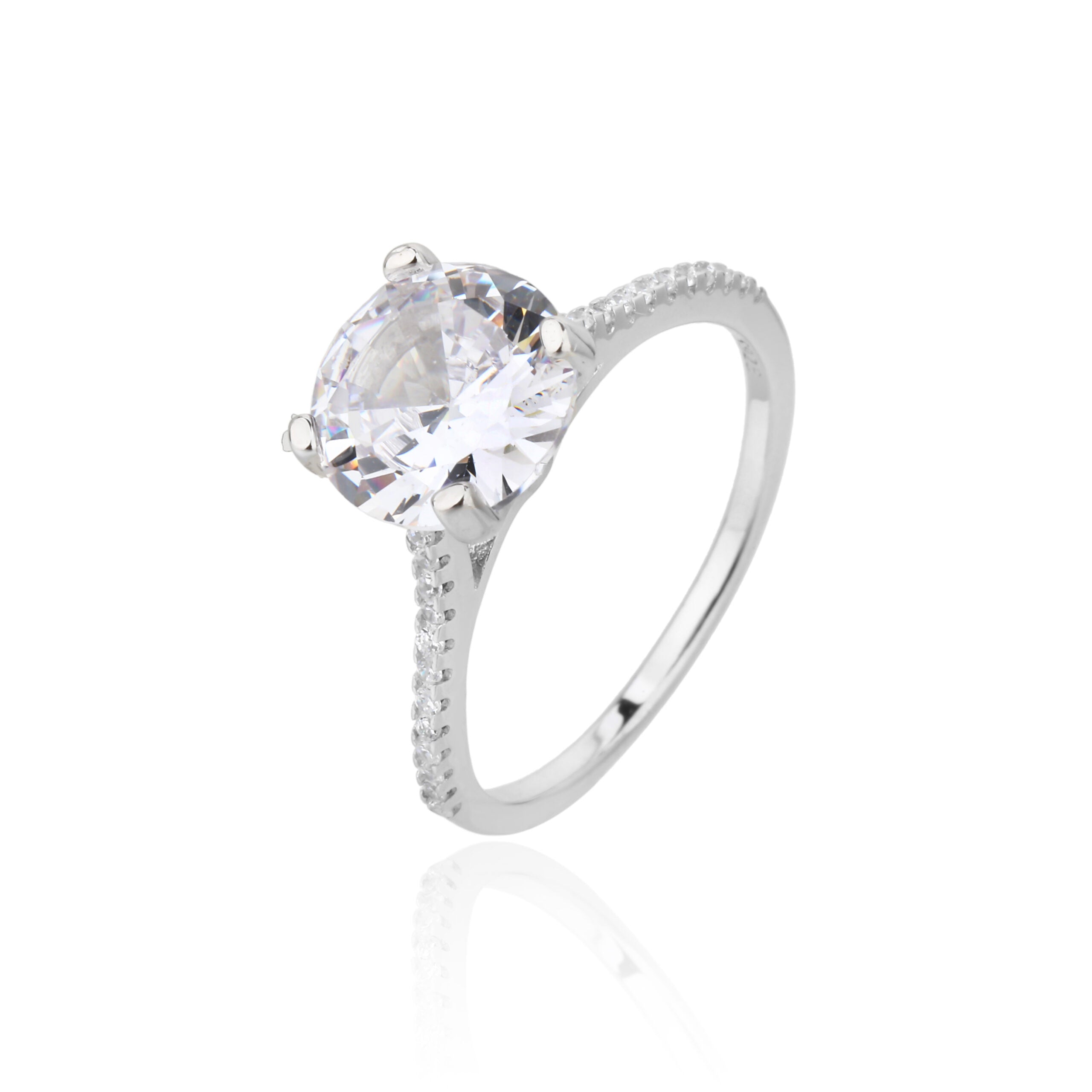 טבעת כסף 925 בעיצוב סוליטר מושלם, עם אבן מרכזית גדולה ומרשימה המעניקה את כל הברק והנוכחות.