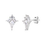 עגילי כסף 925 צמודים בעיצוב מעוין משובץ