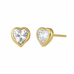 זוג עגילי סטאד מזהב צהוב 14K עם אבן זרקון אחת בצורת לב, נקייה ונוצצת, בעיצוב עדין ומוקפד.