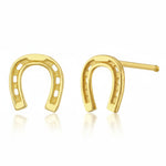 זוג עגילי סטאד מזהב צהוב 14K בעיצוב פרסה קטנה ועדינה, מסמל מזל, שמירה ופתיחת לב טוב.