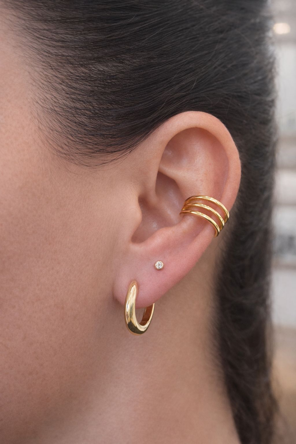 העגיל נתפס בעדינות על הסחוס באמצעות מנגנון קליפס פנימי, יושב בצורה יציבה ונוחה ומתאים לענידה יומיומית.