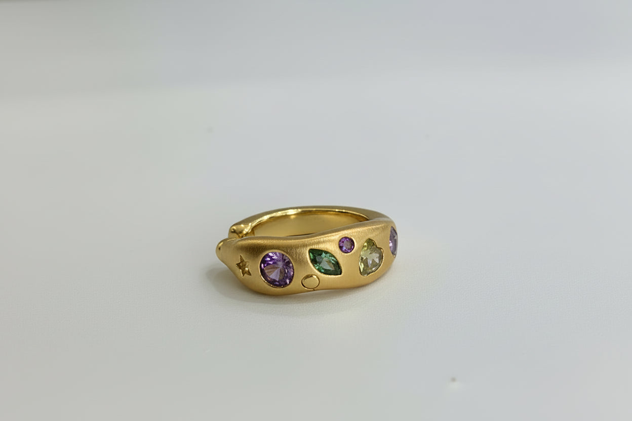 השילוב בין הציפוי הזהוב האיכותי לבין האבנים הצבעוניות יוצר מראה צעיר, אופנתי ומלא סטייל, שמתאים ליום־יום וגם לשדרוג לוק ערב.
