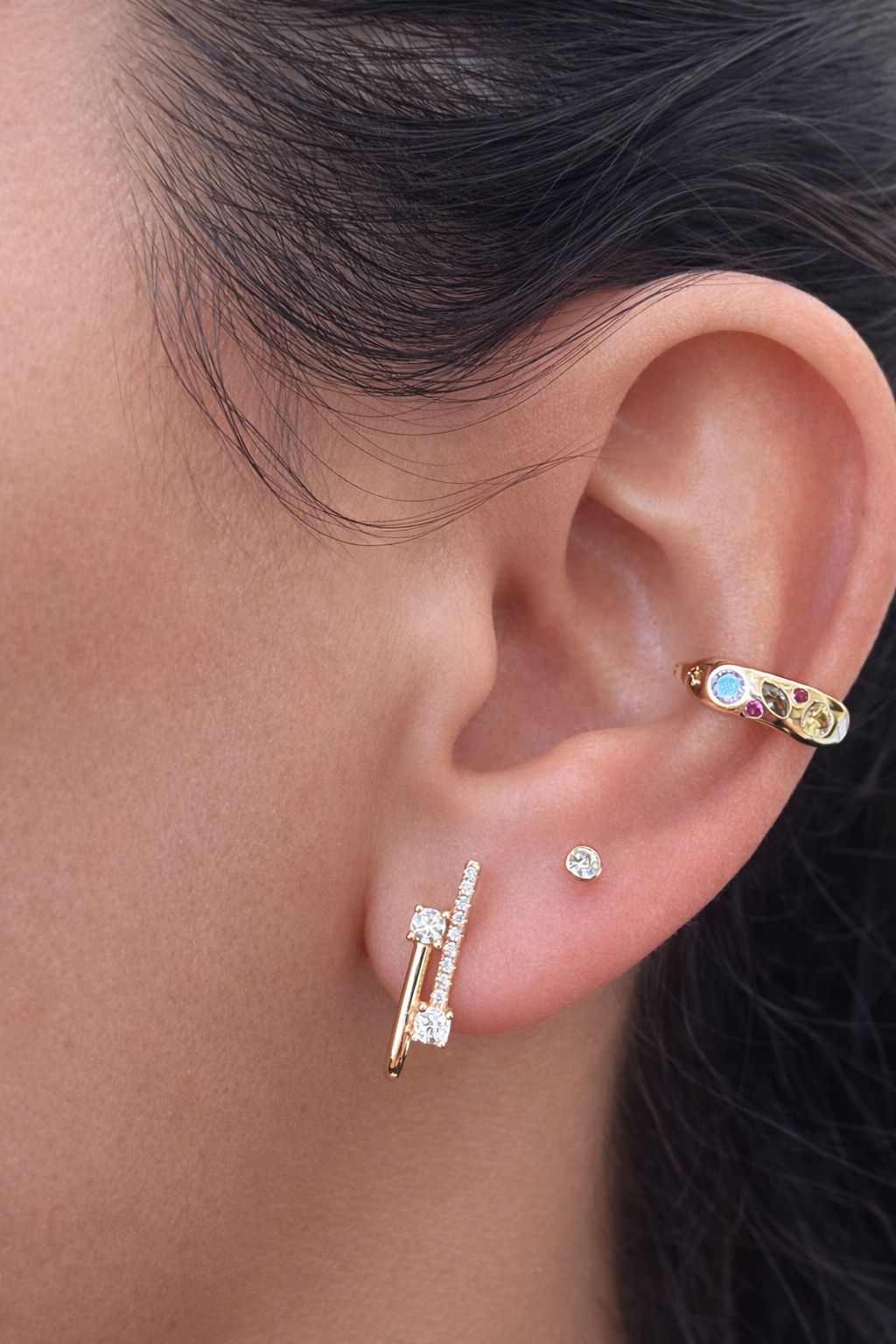 מושלם למי שאוהבת עיצוב אוזן צבעוני וייחודי, ורוצה לשחק עם שכבות בלי לבצע חור נוסף.