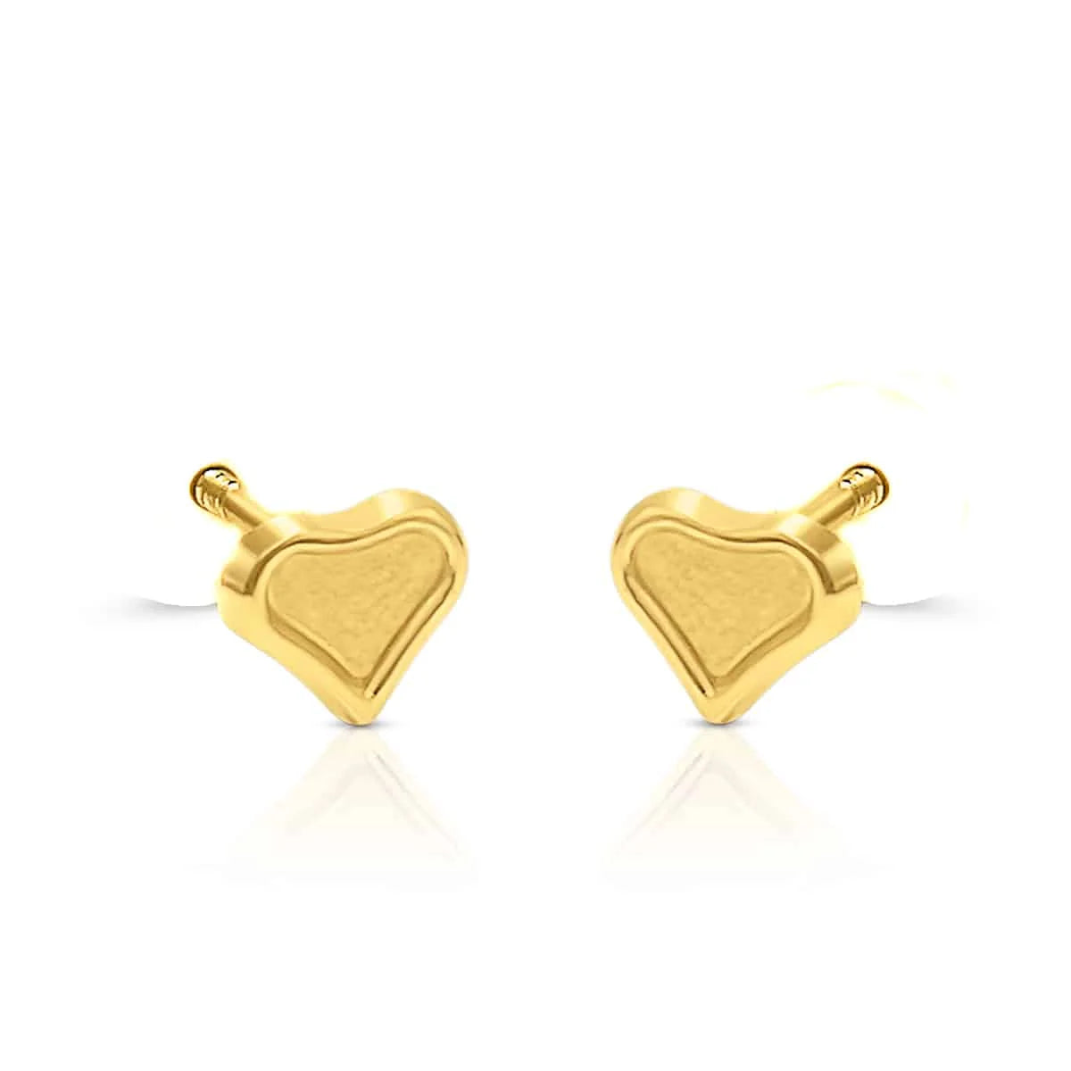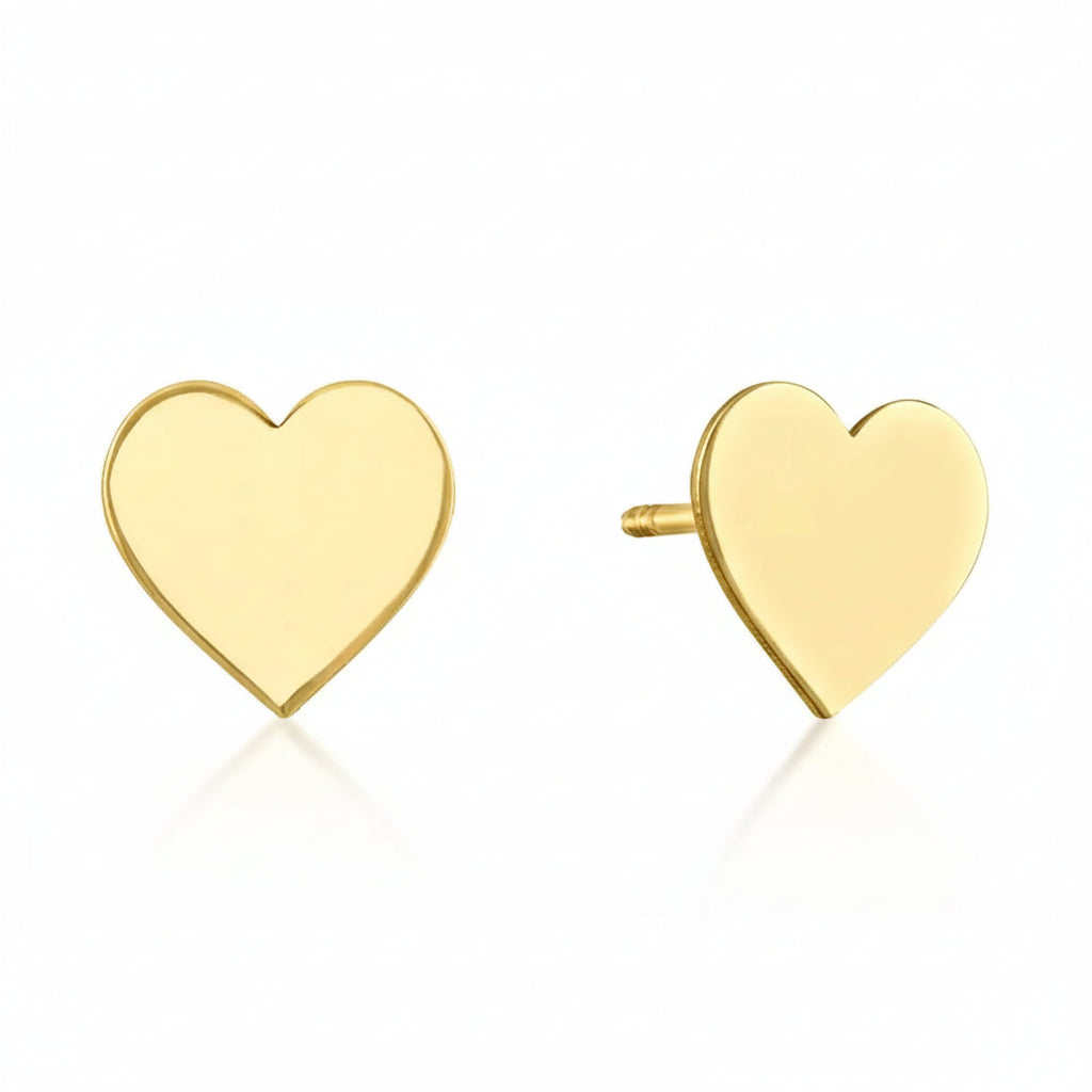עגילי זהב 14K דגם לב קטן עם חריטת לייזר