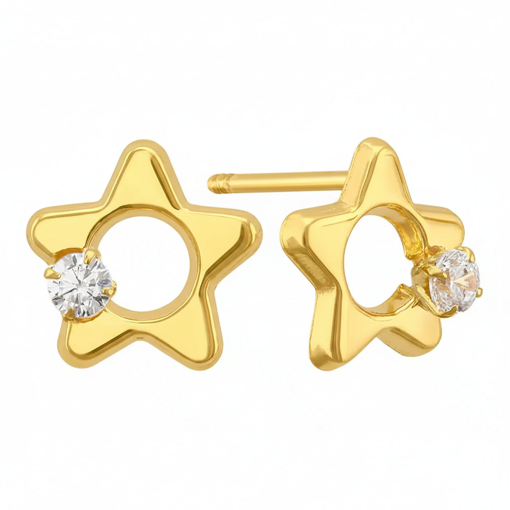 עגילי זהב 14K כוכב חלול עם אבן משובצת
