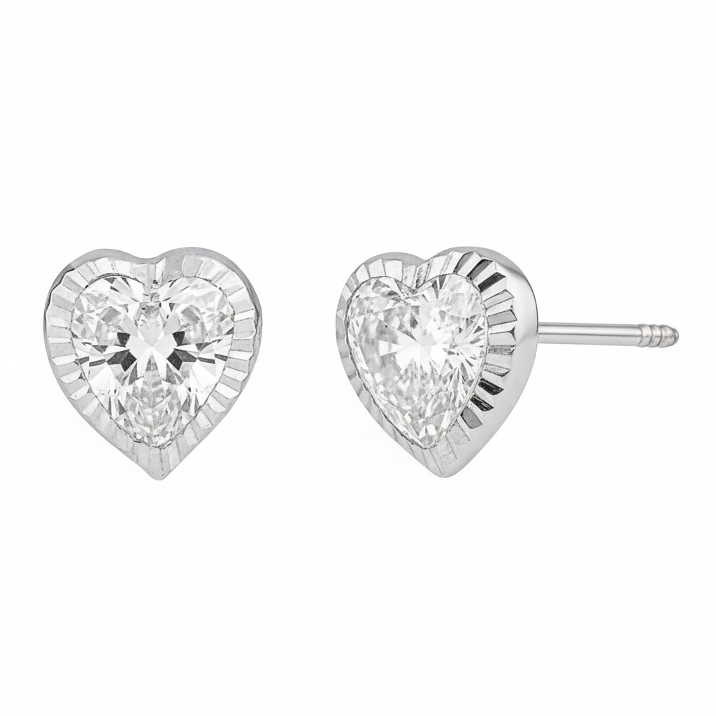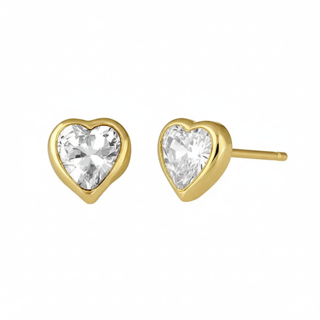 עגילי זהב 14K לב זרקון יחיד – עדין ונוצץ