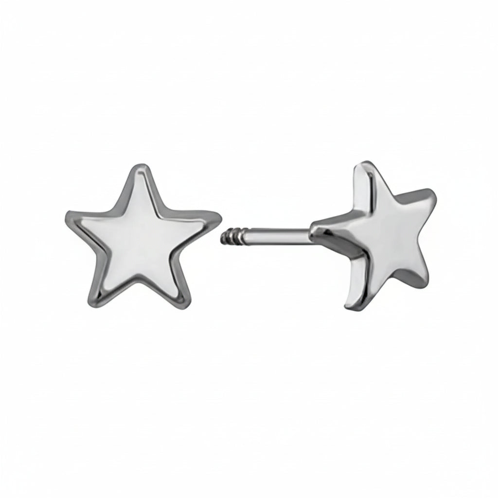 עגילי זהב לבן 14K כוכב חלק ועדין