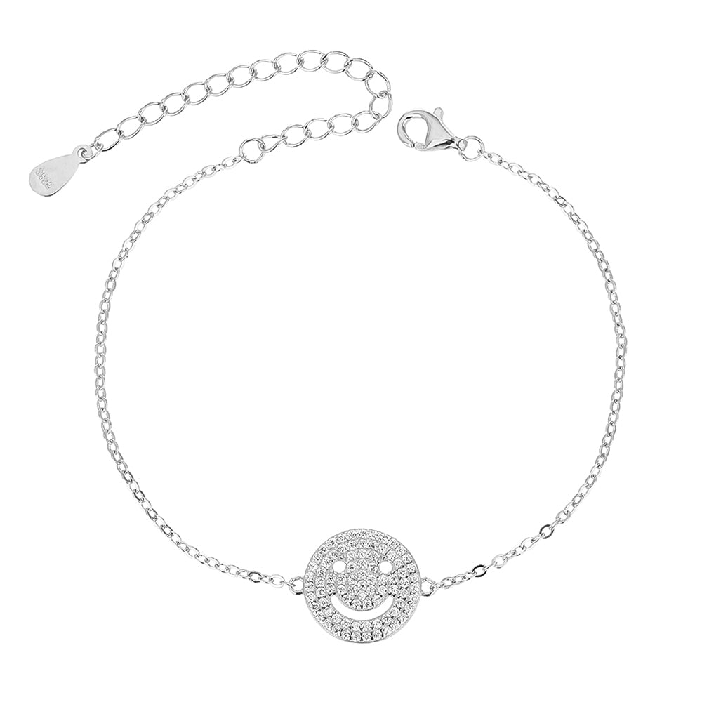 צמיד עדין ונוצץ בעיצוב סמיילי מחייך, עשוי כסף אמיתי 925 ומשובץ באבני זרקון בוהקות. שילוב מקסים של סטייל, שמחה ונוכחות, עם סגירה מתכווננת להתאמה מושלמת על פרק כף היד