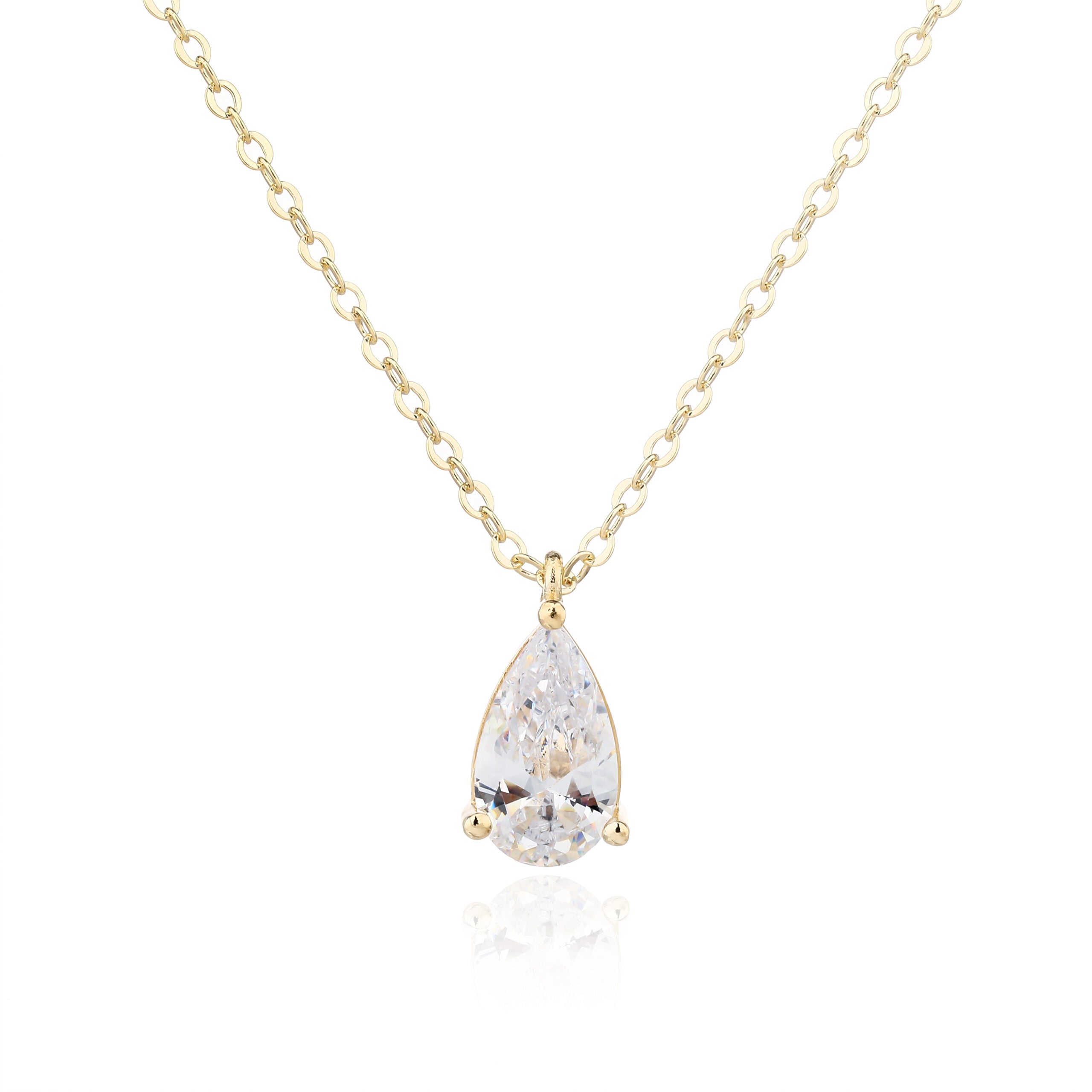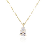 שרשרת בציפוי זהב איכותי, משובצת אבן זירקון בצורת טיפה המעניקה מראה נשי, נקי ומלא ברק.