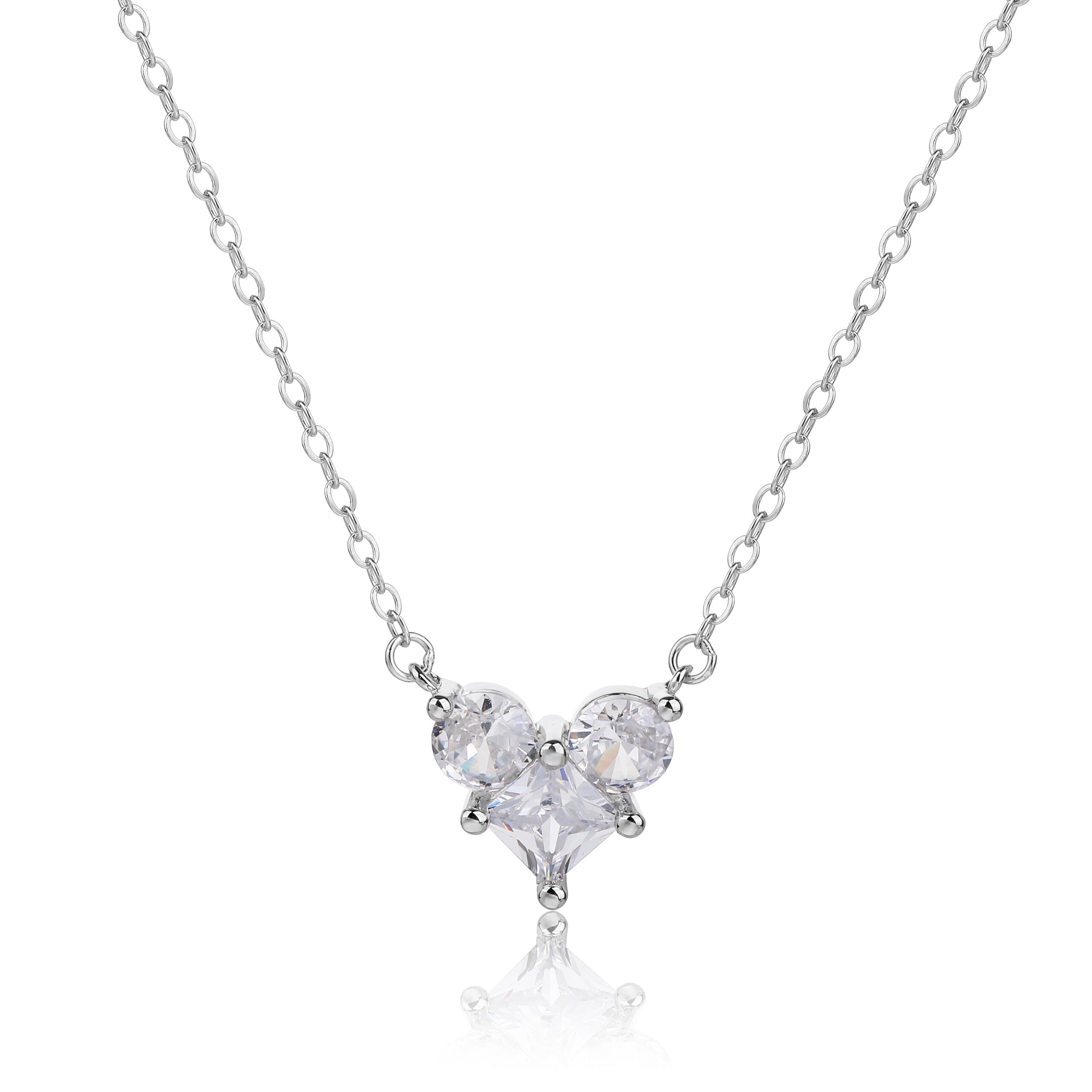 שרשרת כסף עם תליון משובץ זירקונים בצורת לב