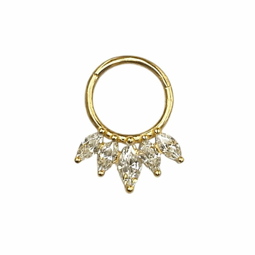 פירסינג זהב 14 קראט חישוק זהב תליון מרקיז משובץ אבני זירקון