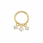 פירסינג חישוק זהב 14 קראט – כתר משובץ שלושה זרקונים