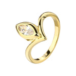 טבעת עדינה וייחודית בעיצוב אורגני של עלה, עם אבן זירקון משובצת שמוסיפה נצנוץ אלגנטי ומראה רך ונשי.